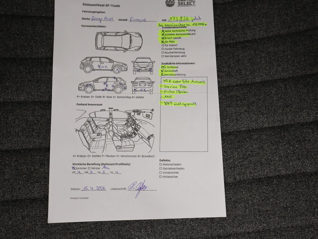 | MFK siehe Foto Ausweis Service Foto Kratzer/ Beulen DPF nicht geprüft KM aufgerechnet per Hereinnahme Datum!!!!!! |