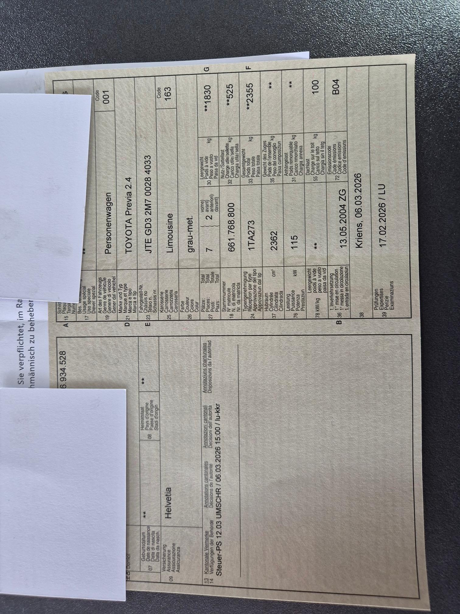 Nr typu (Typenscheinnummer) 1TA273